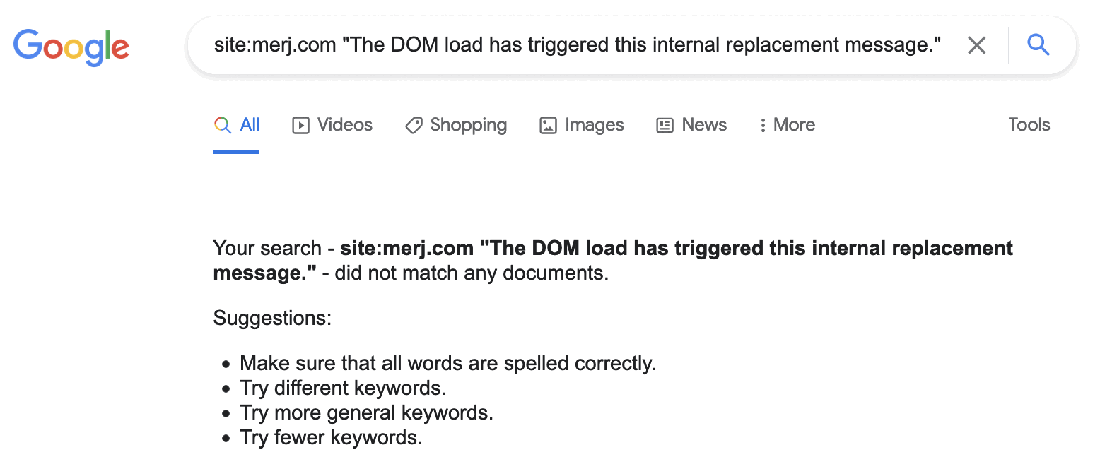 site:merj.com "Initial content was here before the internal hash was used to generate a new message."