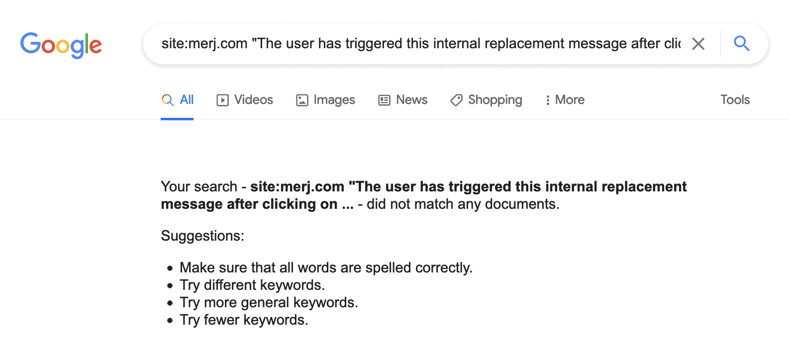 site:merj.com "The user has triggered this internal replacement message after clicking on an onClick tab."