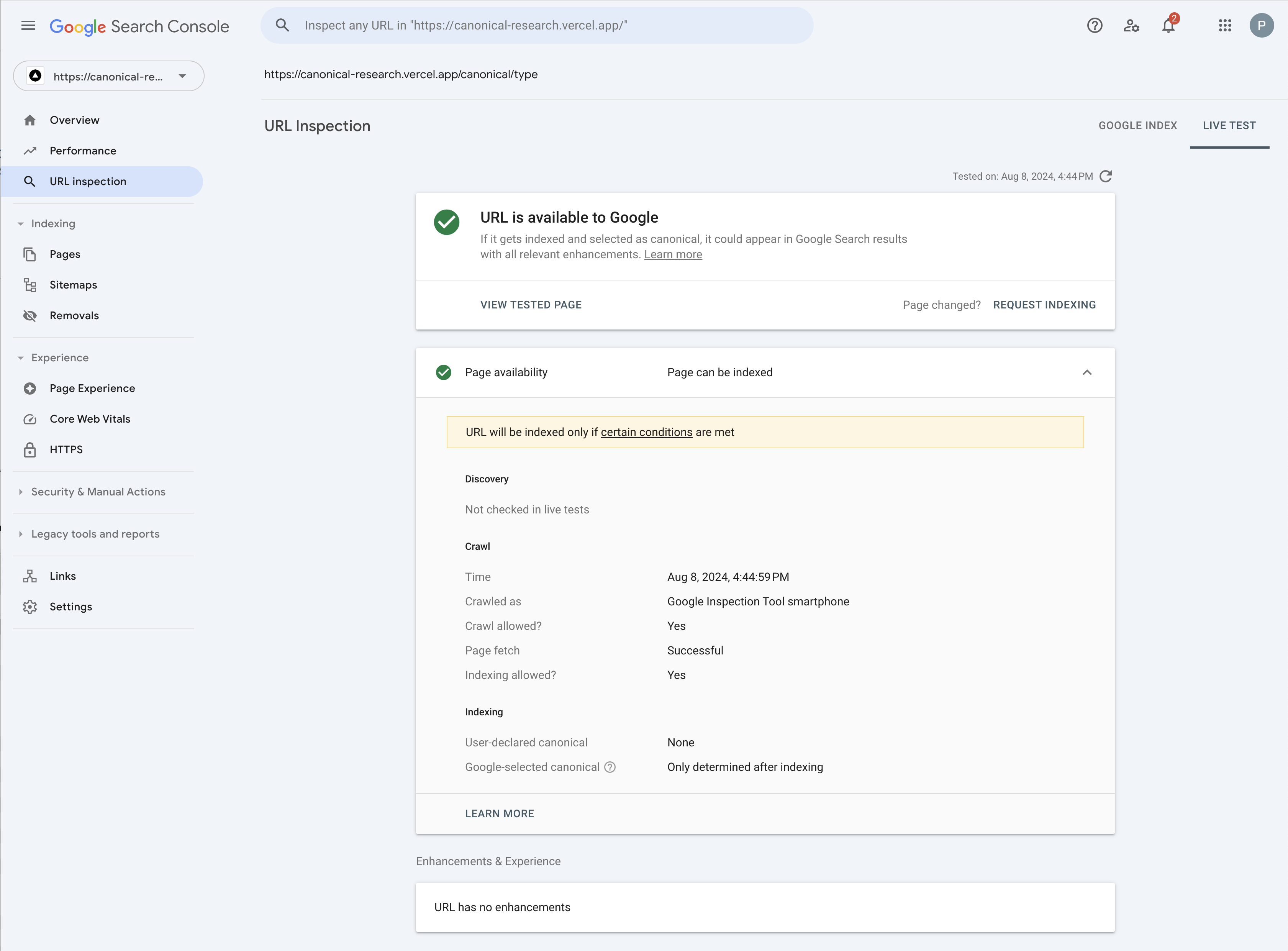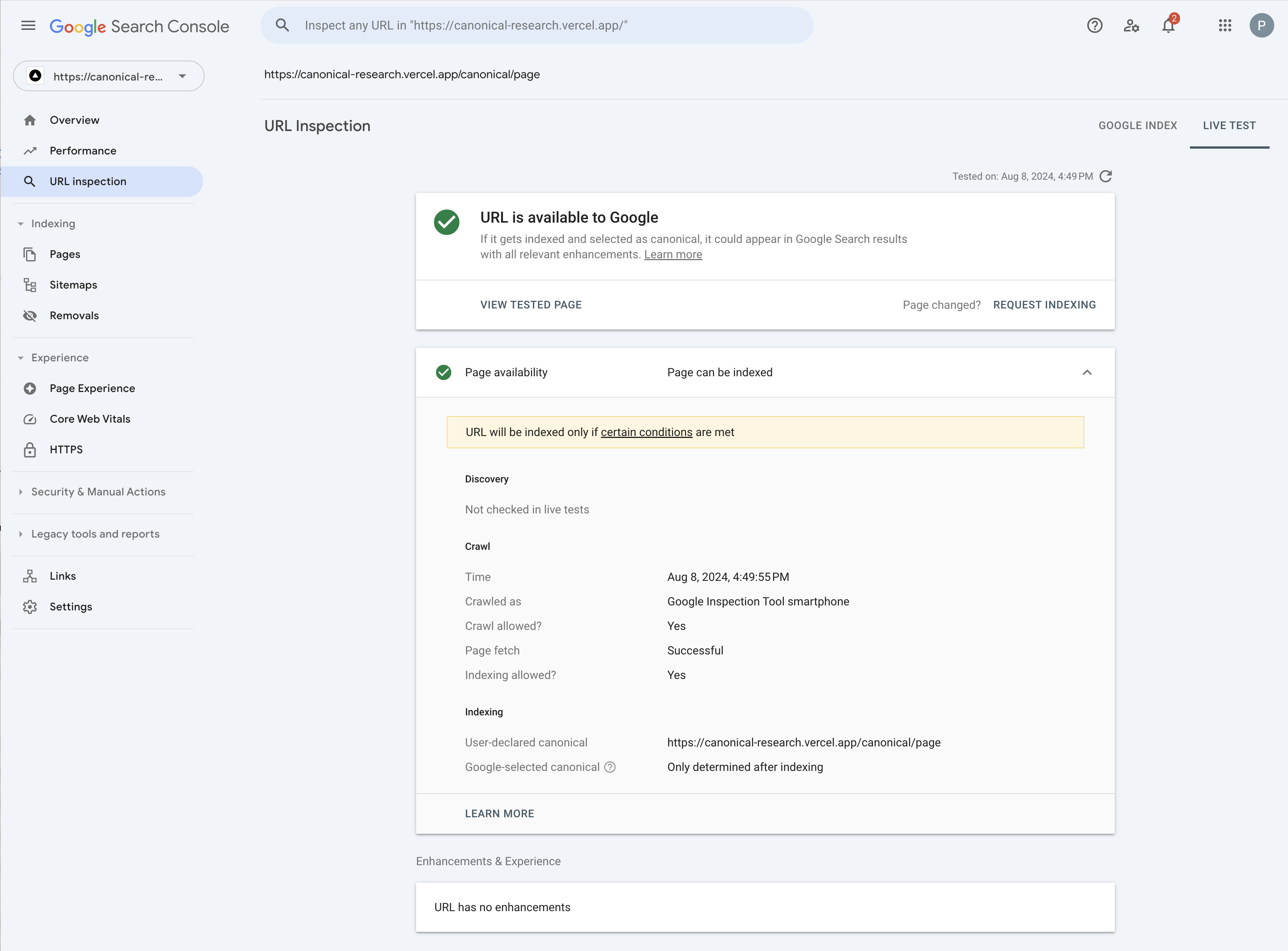 - Experimental Setup: We developed a Vercel application to generate 568 URLs with various attribute permutations (available at https://canonical-research.vercel.app)