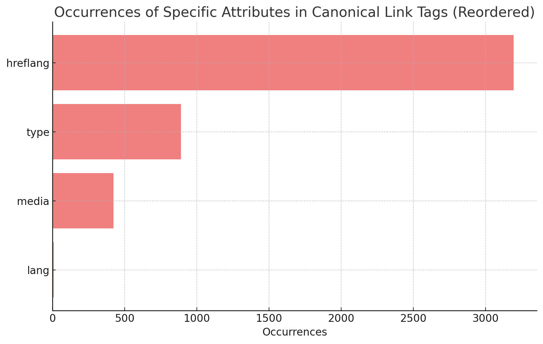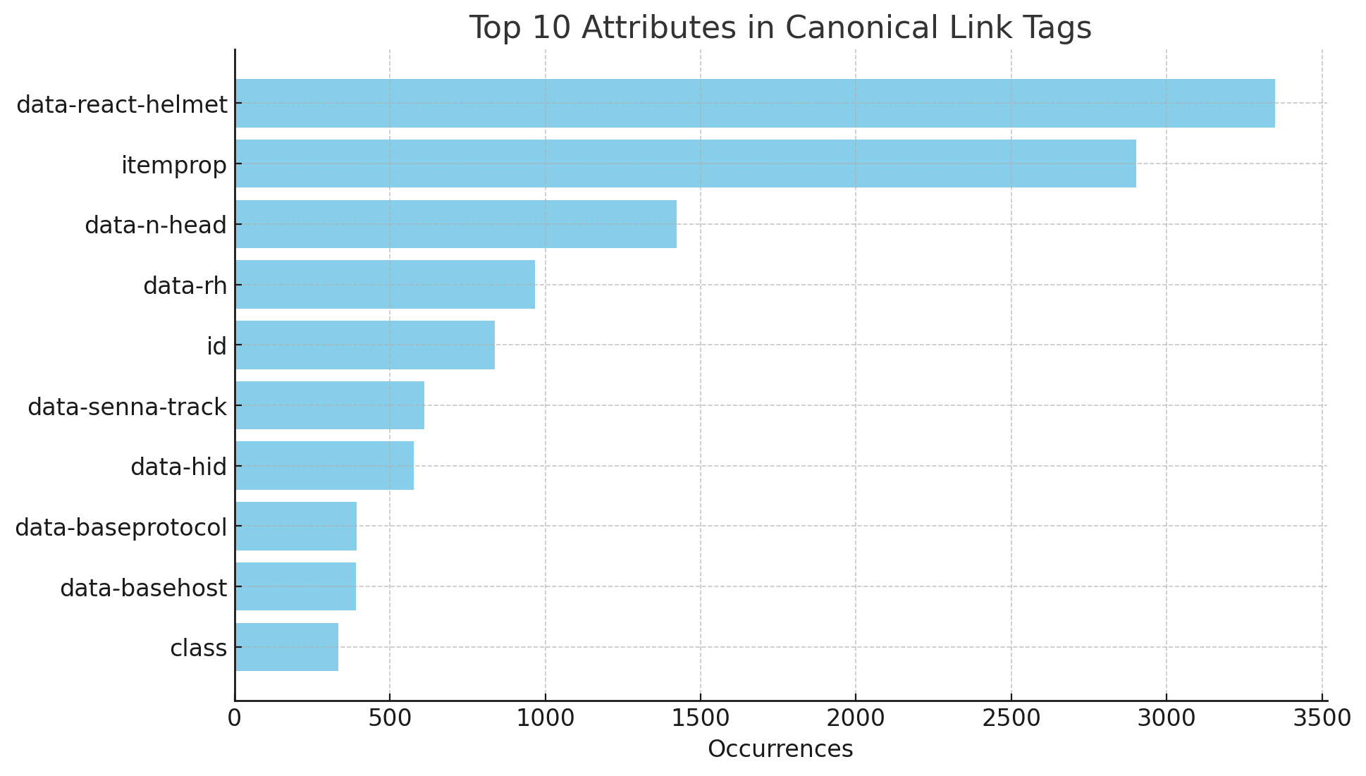 - Attribute Analysis: We identified and cataloged 210 unique attribute names used in canonical link tags.
